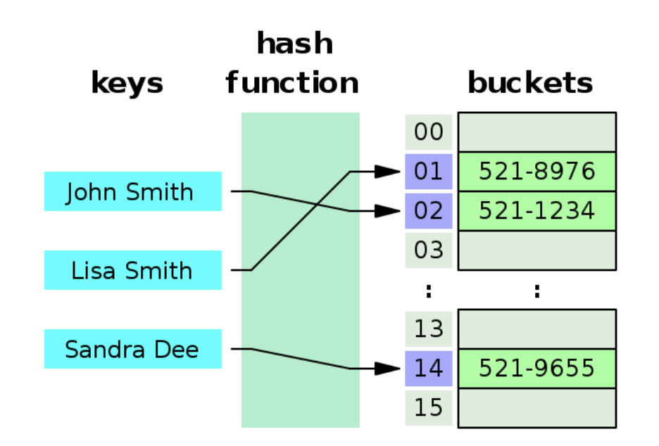 저 해시함수의 결과값을 Hash라고 하는데 이는 Bucket의 위치를 찾을 수 있는 인덱스와 같은 존재이다. 데이터가 저장되는 공간을 버킷이라 한다.