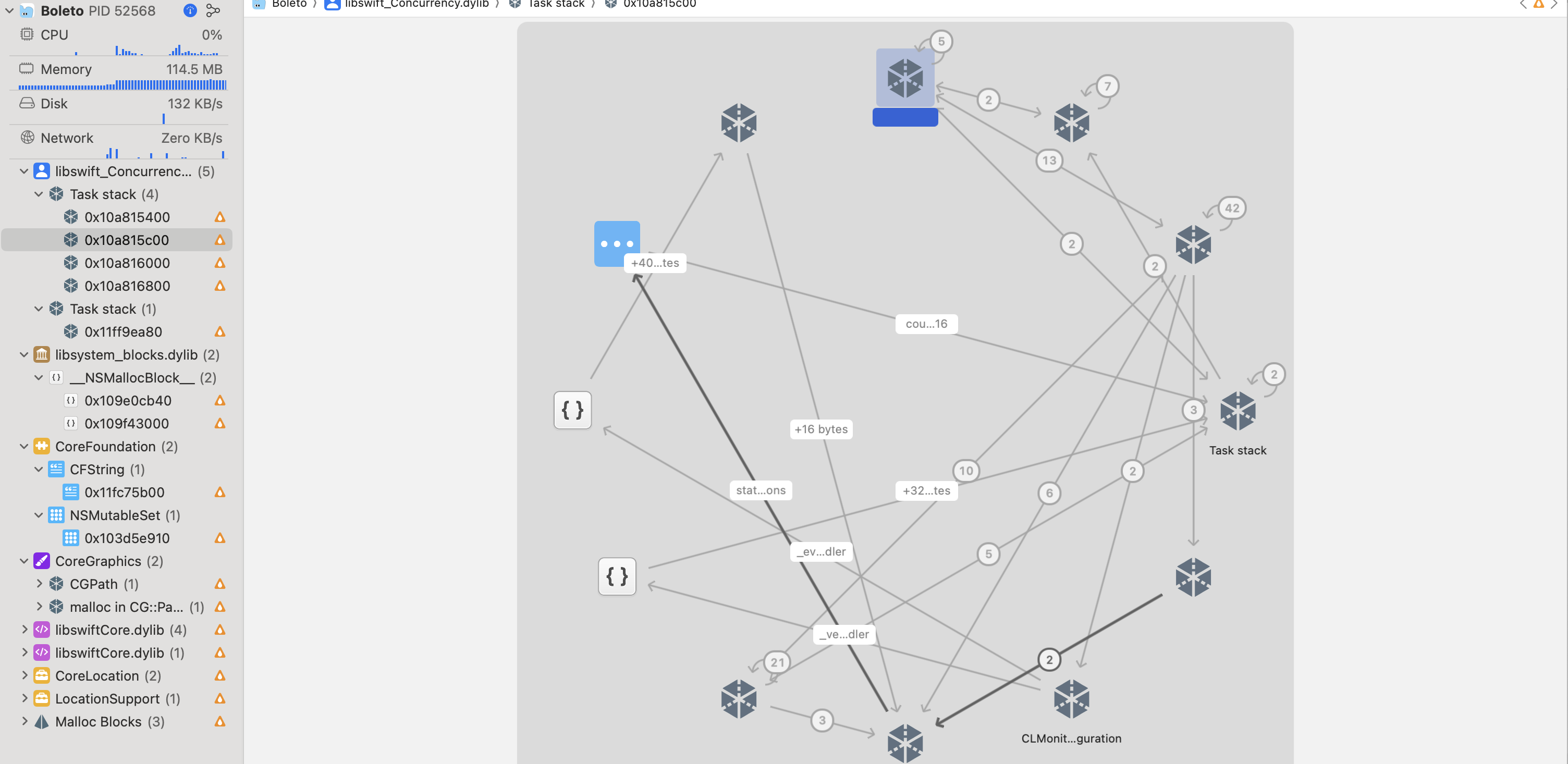 나의 앱 볼레또는 여행 날짜가 되면 CLMointior인스턴스에 해당하는 지역의 위도 경도를 넣어 모너터링을 키고 유저가 해당 지역에 가면 푸쉬 알람을 보내주는 기능이 핵심이다. 이전에는 모니터링 이외의 메모리 릭을 살펴봤는데 이번에는 모니터링에서 발생하는 Memory Leak을 살펴볼 예정이다.