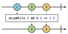 Skip 연산자는 특정 조건이나 개수에 해당하는 이벤트를 건너뛰고, 이후의 이벤트만 처리합니다. 이는 filter와 중요한 차이점이 있습니다: