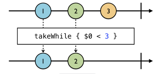 SkipWhile과 비슷하면서 다르네... 조건을 만나기전까지 이벤트값만 방출하고 그 뒤론 무시한다.
