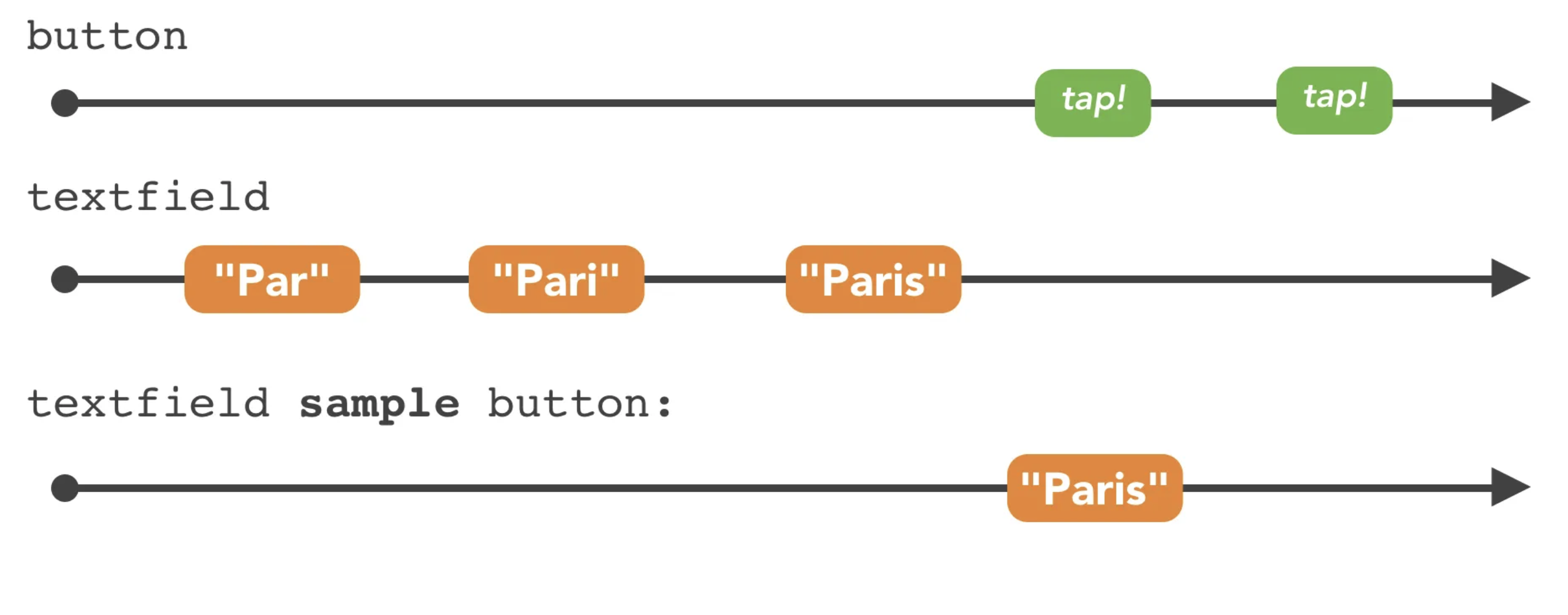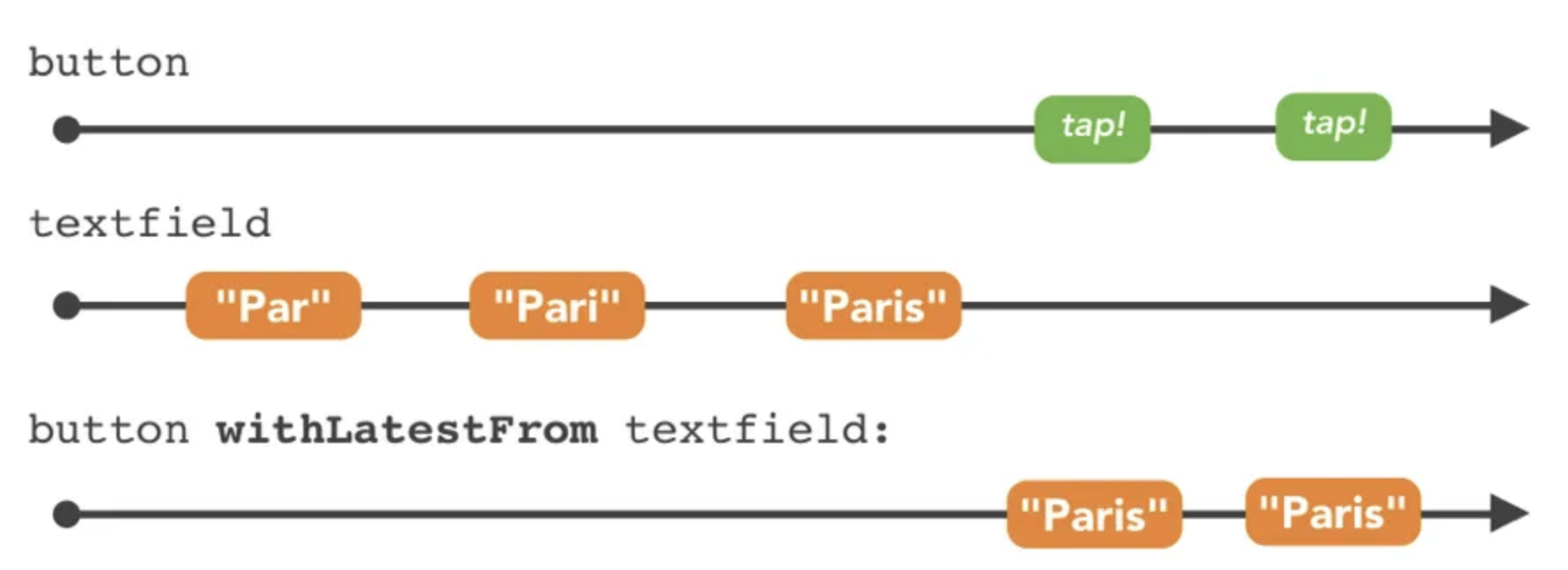 Observable.merge(buttonTaps, gestureTaps, menuSelections)