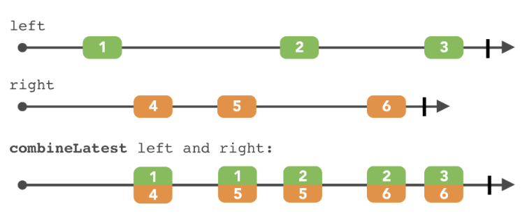 - 어떤 소스에서든 새 항목이 방출되면 모든 소스의 최신 값을 사용하여 새 결과 생성