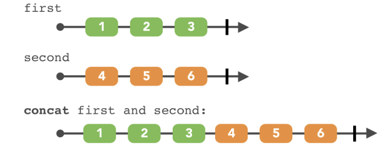 여러 옵저버블 시퀀스를 순서대로 합쳐줍니다.사실 합쳐진다느낌보다는 순서대로 진행한다? 가 더 맞는 표현이라고 한다.