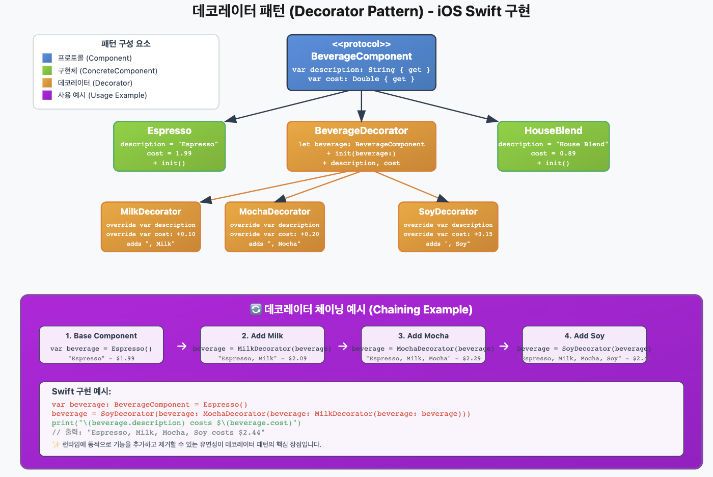 🏠 2. iOS에서의 데코레이터 패턴 실제 구현