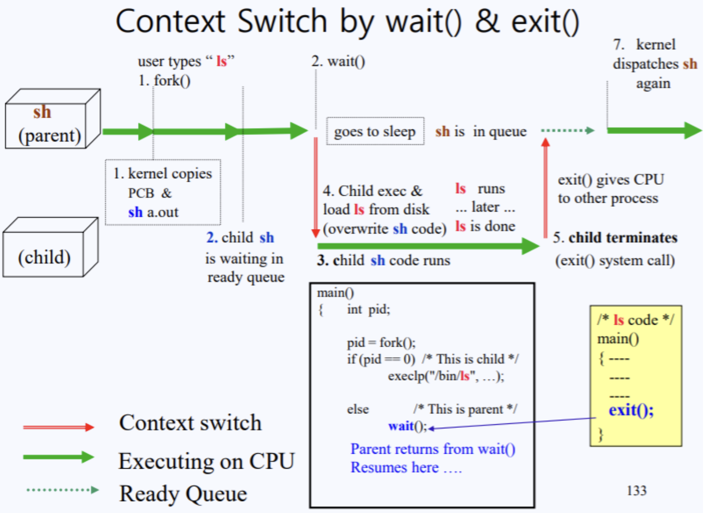 3. 나중에 자식 실행 -> exec()으로 메모리 덮어쓰기