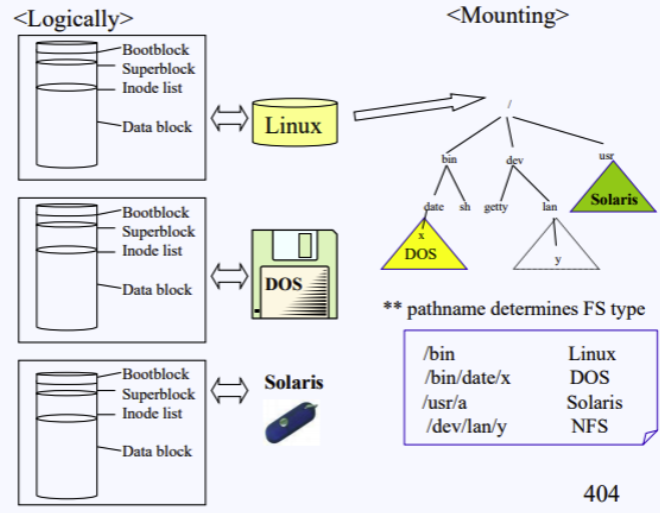 예전 유닉스 환경에서는 오직 유닉스 파일 시스템만 마운트가 가능했어요. 윈도우, 솔라리스 등 다른 파일 시스템은 서로 호환되지 않았죠.