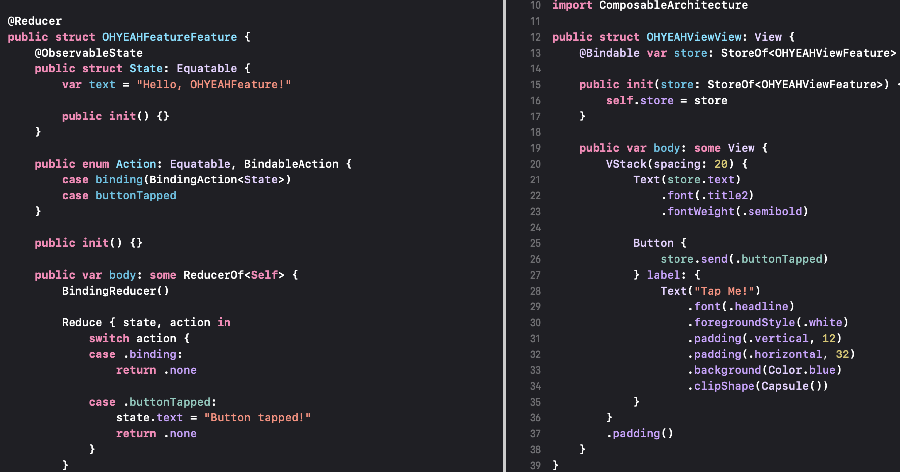 File → New → File → TCA Feature (SwiftUI)