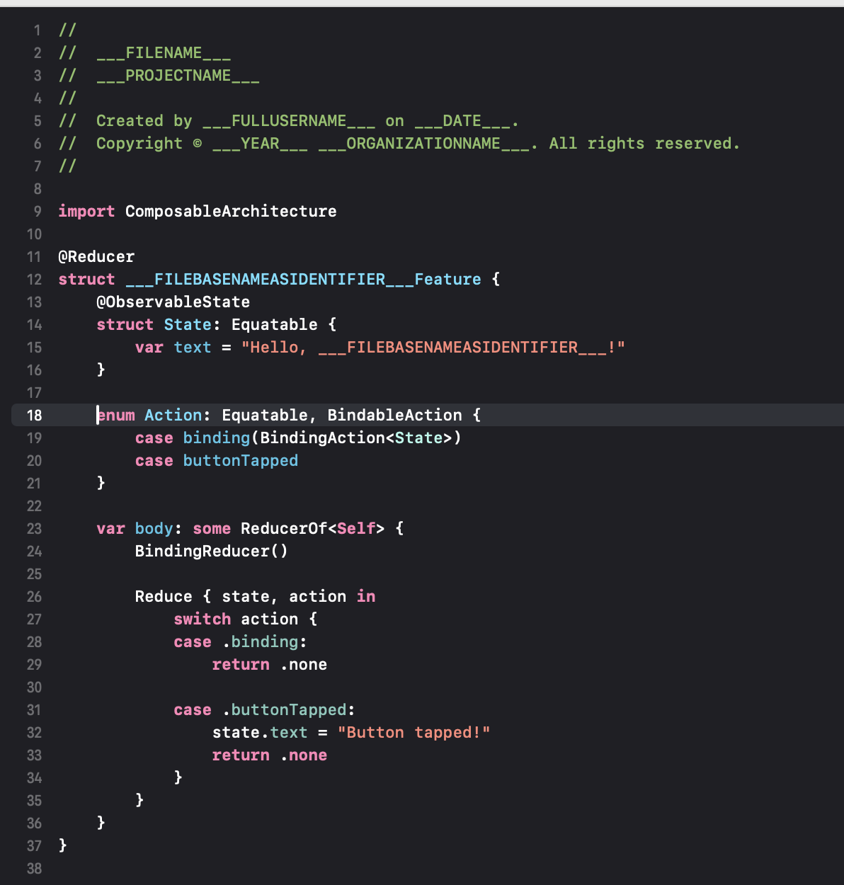 │ ├── ___FILEBASENAME___Feature.swift