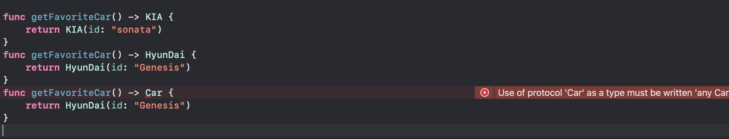 즉 "Car 프로토콜을 채택받은 뭔가가 반환되겠지..? 근데 그게 뭔데??"라는 상황이거든요.