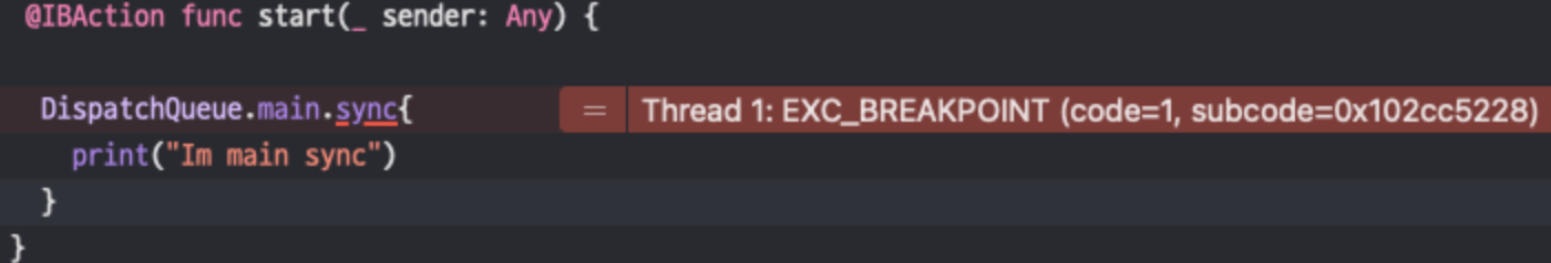 DispatchQueue.global().sync{} : 메인쓰레드에서 다른 큐로 보낼때 이렇게 sync로 보내게 된다면 1번에서 했던 마찬가지 데드락이 발생한다. 또한 현재와 같은 큐에 sync를 보내면 안된다.