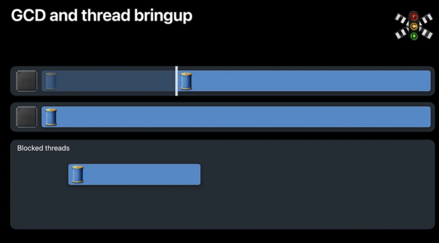 가장 큰 문제는 Thread Explosion입니다. GCD는 새로운 작업이 들어올 때마다 "혹시 기존 스레드가 block되어 있나?"를 확인하고, block되어 있으면 새 스레드를 생성해버려요.