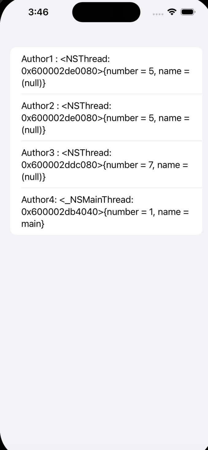 Author1 : <NSThread: 0x280f44200>{number = 1, name = main}