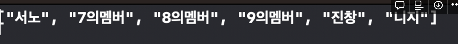 let nameList = ["서노","수낵","민킴","주용","진창","니지","7의멤버","8의멤버","9의멤버"]