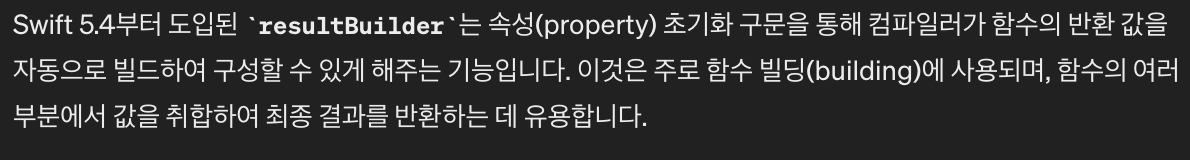위의 ViewBuilder 해체쇼를 하던 중 앞에 @resultBuilder가 붙어있다. 엥? 이게 모지? 🤖등장