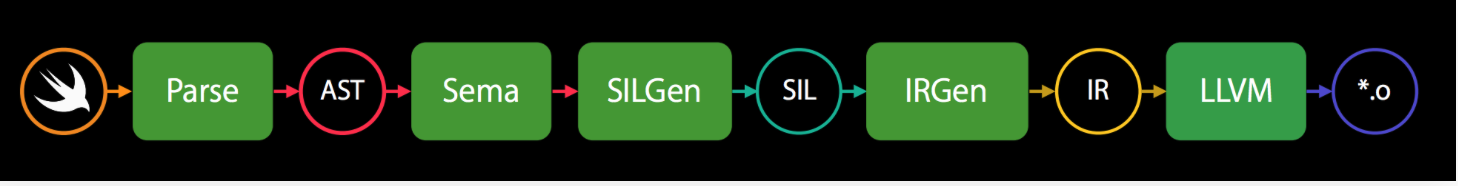 - 🔴 프론트엔드: Swift 코드 → AST 생성 → SIL 변환 → 타입 검사, ARC 최적화