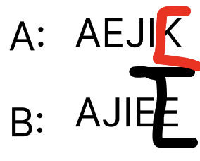 1. 맨 마지막문자열부터 비교를 해보면 된다.
