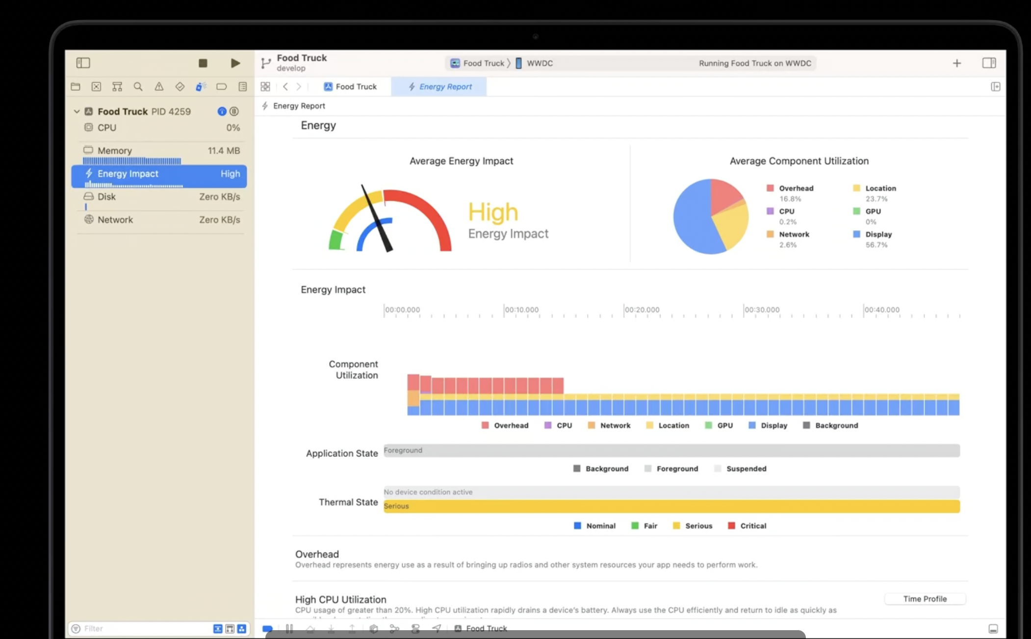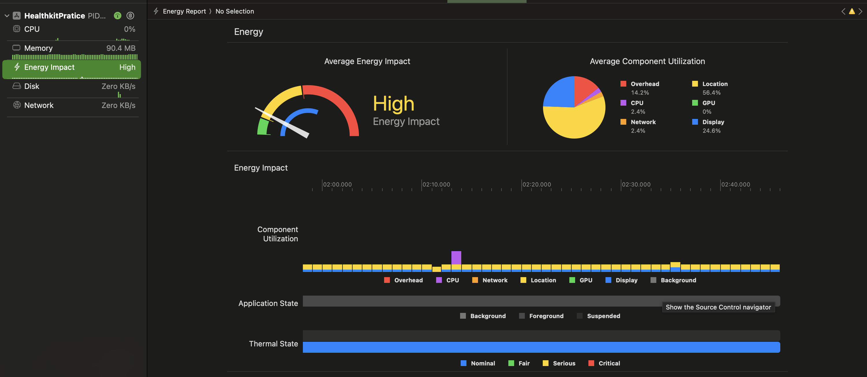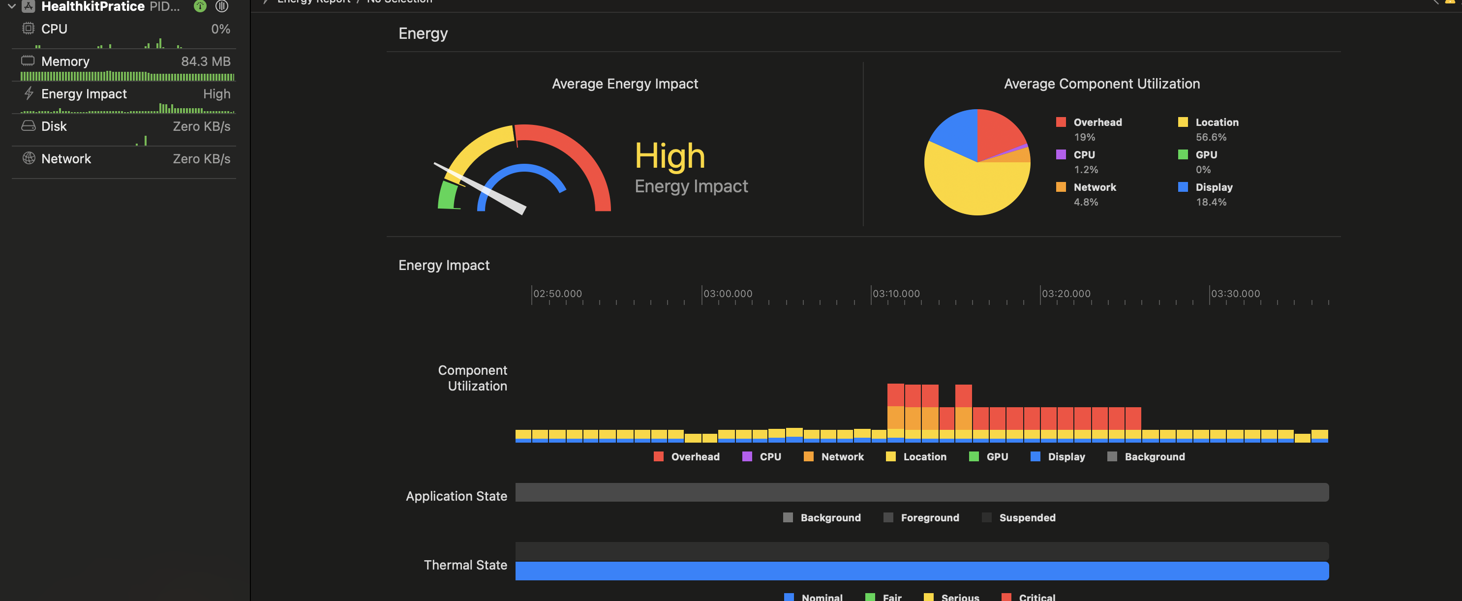 를 이용하면 xcode내에서 CPU, Network, 위치 사용량 등 시스템 사용량에 대한 정보를 제공한다. 또한 시간대로 위치사용이 앱에 미치는 영향을 보여준다. 그래서 내가 궁금했던 corelocationManager를 어떻게 관리해야 enegery를 가장 아끼고 우리가 원하는대로 사용할 수 있을지 지금부터 체크해보겠습니다.