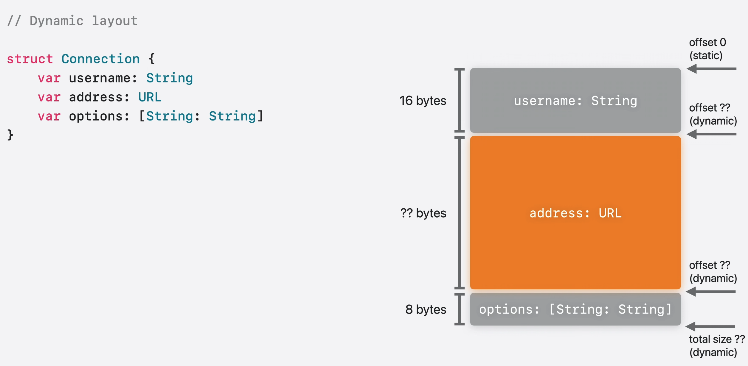 Swift는 이러한 동적 크기 타입을 처리하기 위해: