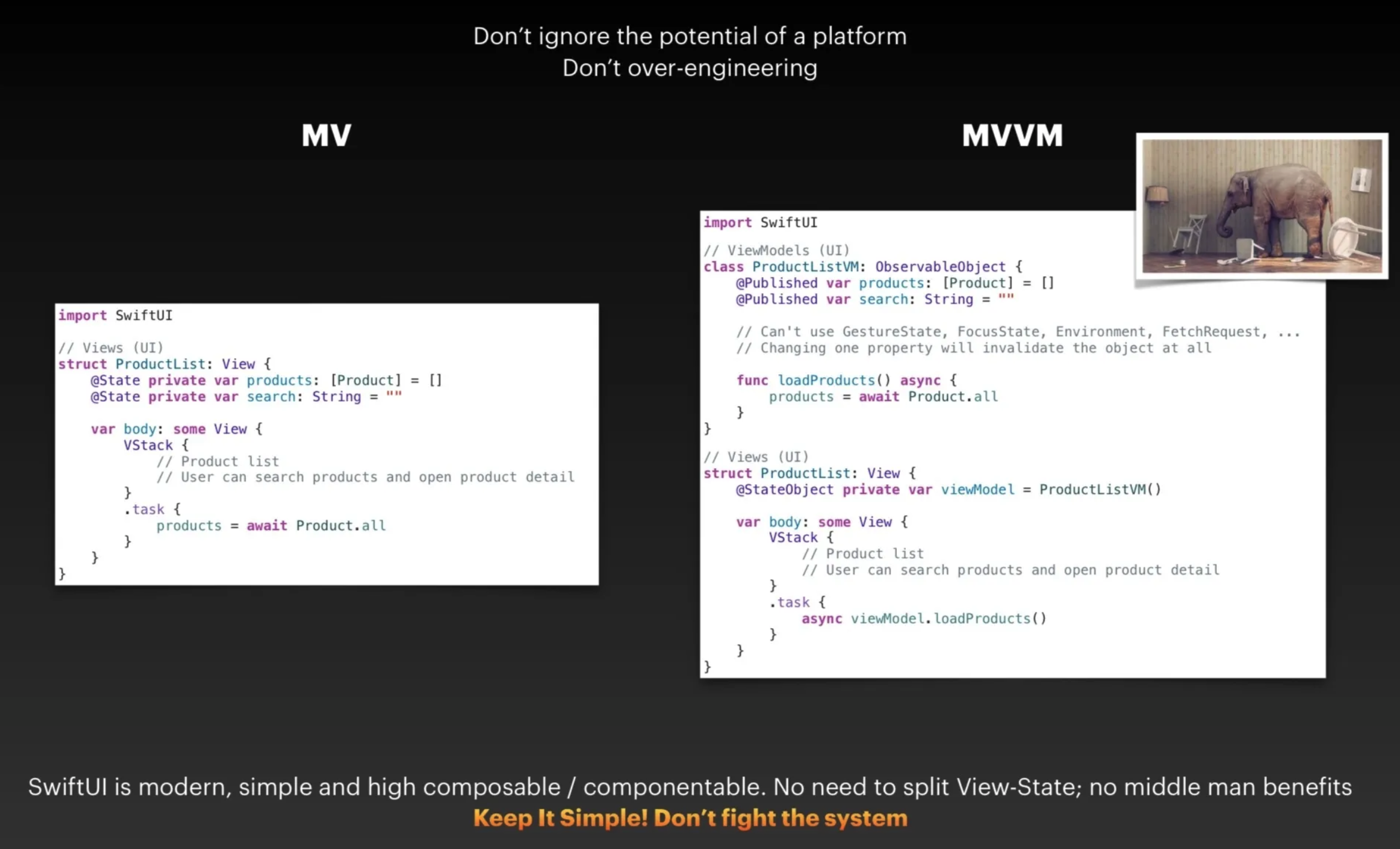 하지만 SwiftUI를 MVVM으로 했을때는 항상 팀원하고 이야기하던게 있었다. 우리가 하는 것이 진짜 MVVM이 맞는가..?