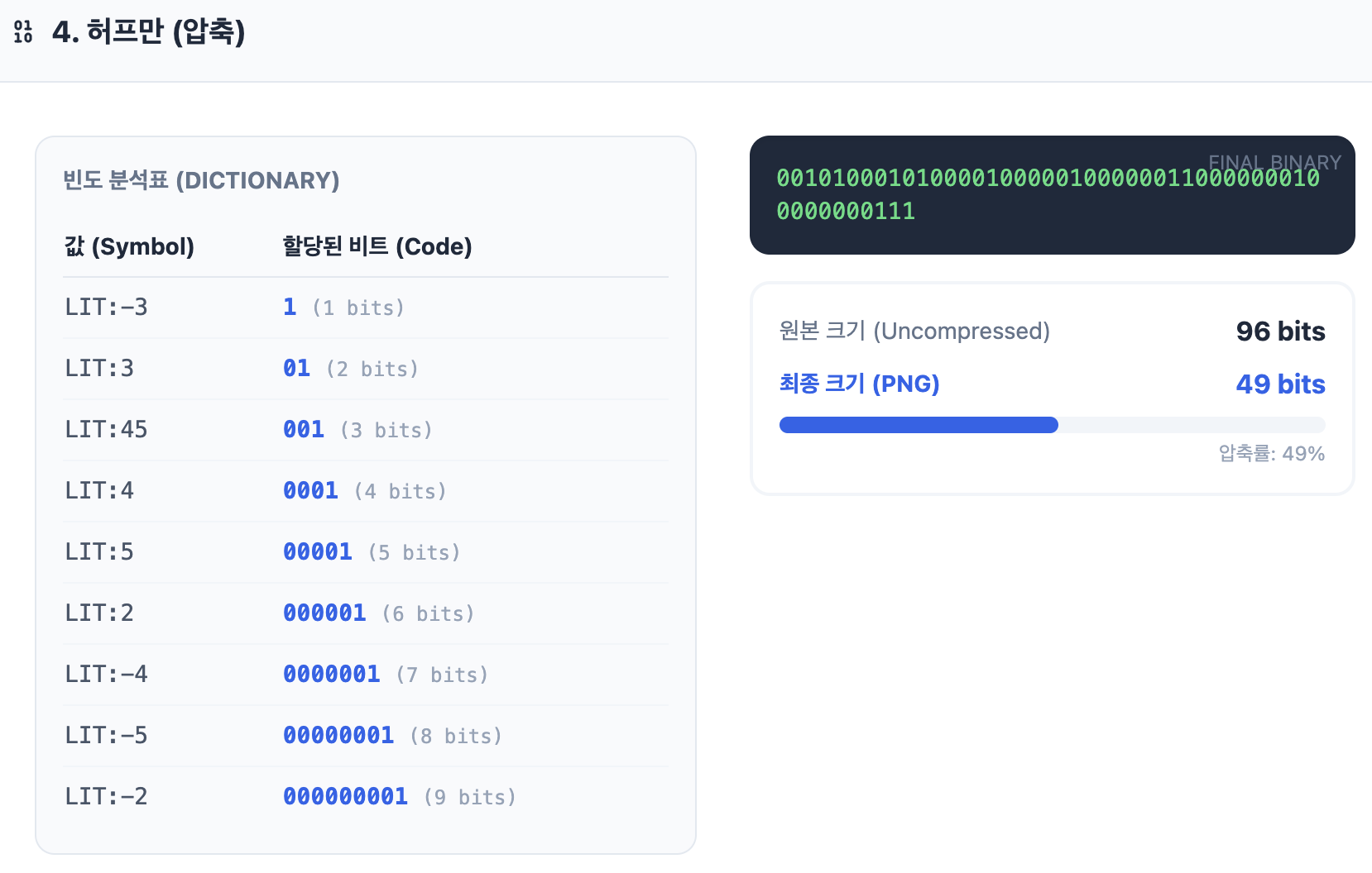 3. Huffman Coding: 자주 나오는 값엔 짧은 비트를, 드문 값엔 긴 비트를 할당