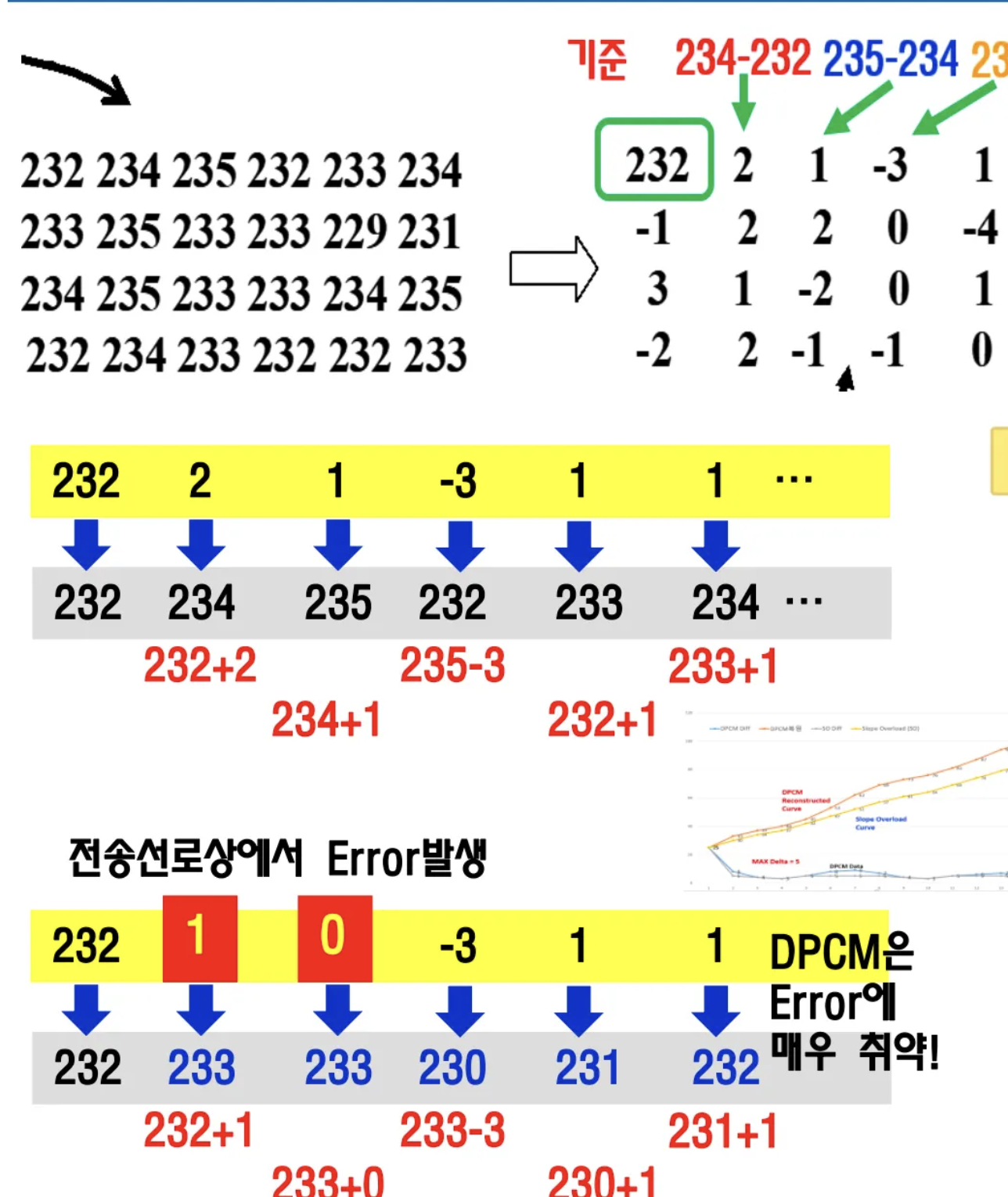 이런식으로 차로 0으로 최대한 만드는게 DPCM입니다. DPCM만 하면 오히려 용량이 커지는데 이는 결국 엔트로피 코딩을 위한 수단입니다.