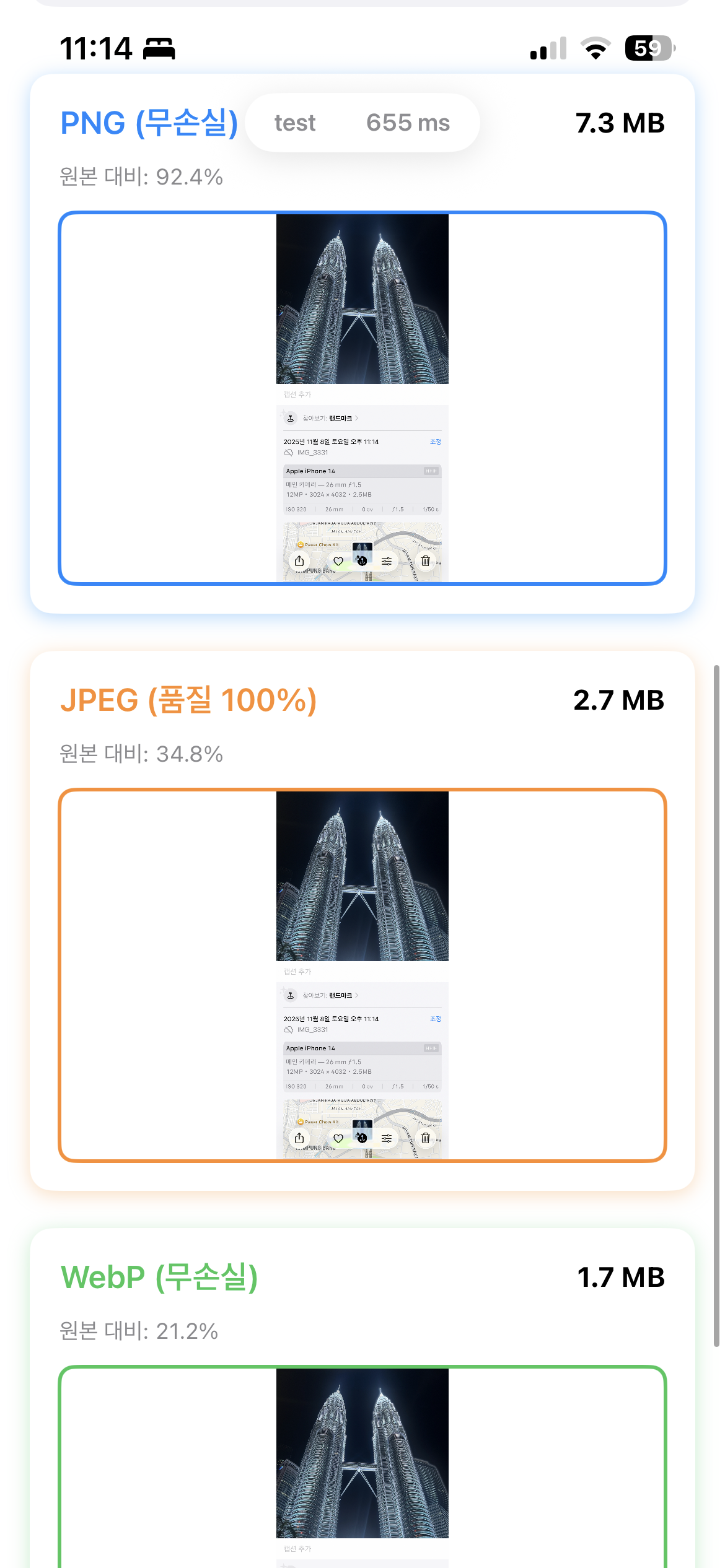 그래도 우리는 학습 목적으로, 그리고 "만약 클라이언트에서 직접 WebP를 다뤄야 한다면?"을 가정하고 한번 비교해볼게요.